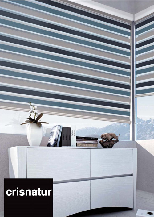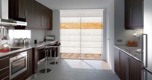 Funcional y práctico, consiste en una pantalla de tejido que se enrolla gracias a un sencillo accionamiento sobre sí mismo, quedando recogido en un espacio mínimo.